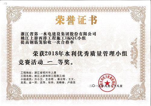 2018水利優(yōu)秀質(zhì)量管理小組一等級(jí)(姚江上游西排工程施工I標(biāo)QC小組)