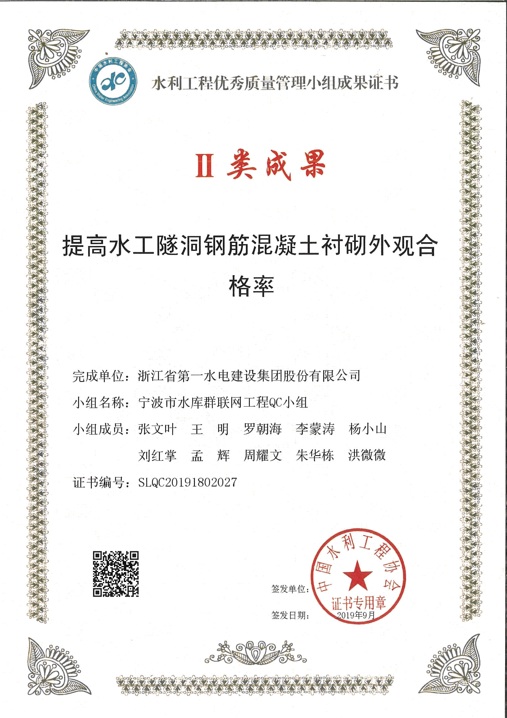 Improve the Pass Rate of the Appearance of Reinforced Concrete Lining in whe Water Tunnel on September, 2019