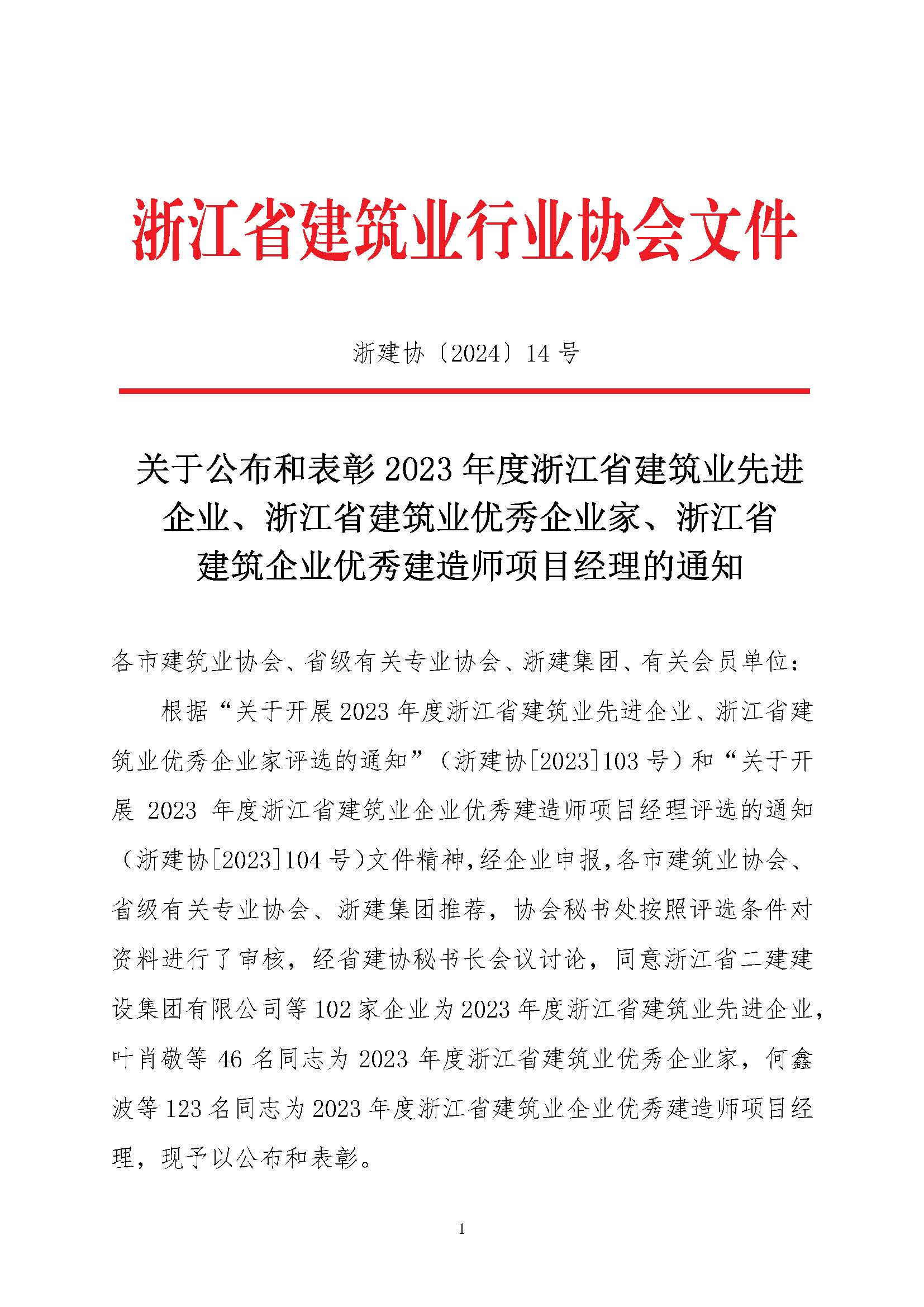 喜訊|集團榮獲“2023年度浙江省建筑業(yè)先進企業(yè)”等榮譽