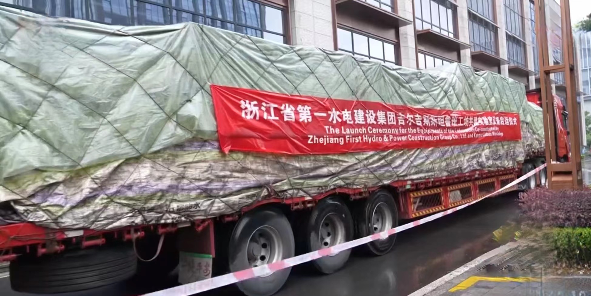 啟運!吉爾吉斯斯坦魯班工坊設備冒雨從浙水大廈發(fā)出